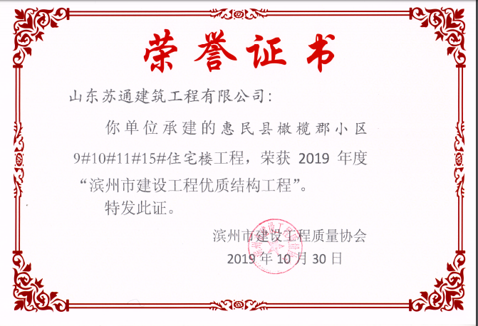 山東蘇通建筑工程有限公司,創(chuàng)建于2009年8月。目前擁有房屋建筑工程施工總承包壹級、市政公用工程施工總承包叁級、水利水電工程施工總承包叁級資質,同時還具有建筑裝修裝飾工程專業承包貳級、消防設施工程專業承包貳級、鋼結構工程專業承包叁級、建筑機電安裝工程專業承包叁級等專業承包資質。 公司總部坐落于山東省濱州市濱城區黃河十二路877號,現有辦公面積約2000平方米,機構設黨支部工會辦公室、總經理辦公室、綜合辦公室、工程管理部、經營預算部、資產財務部、材料設備部、運行管理部、法律事務部等多個職能部門。公司管理體系已經通過了GB/T 19001及GB/T 50430質量管理體系、GB/T 24001環(huán)境管理體系(EMS)、GB/T 28001職業健康安全管理體系(OHSMS)等體系的認證。 公司承建完工了濱州市建大教師之家、建大清怡苑、香格里拉水岸綠城住宅小區、雙泰建大城、曲阜崇德公館住宅小區、北海新區御景藍灣住宅小區、沾化德榮國際華城住宅小區、惠民橄欖郡住宅小區等工程項目,目前在建工程項目有:濱州市頤高國際電子商務產業園住宅小區項目、濱州市東盛國際項目、高新區建大中央華府住宅小區項目、濱州市融匯新里程住宅小區項目、濱州市建大秦皇壹號住宅小區項目、濱州市森林花...